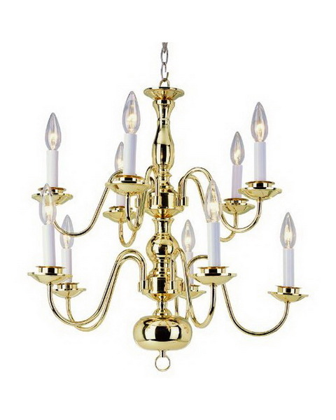 | Epiphany Lighting 100274 PB Ten Light Williamsburg Chandelier in Polished Brass Finish Polished Brass 10 LIGHT WILLIAMSBURG CHANDELIER Width: 24" Height: 16.5" Bulbs: 10-60 Watt (C) |